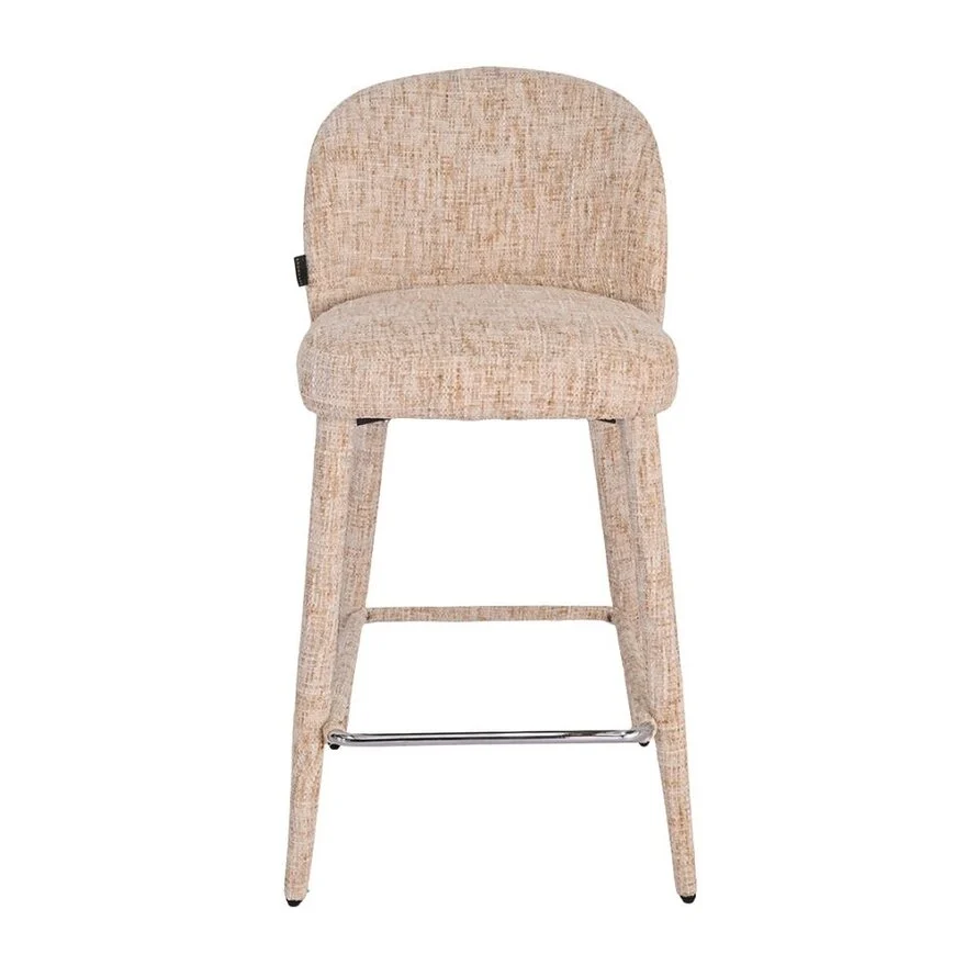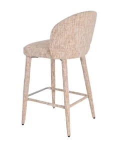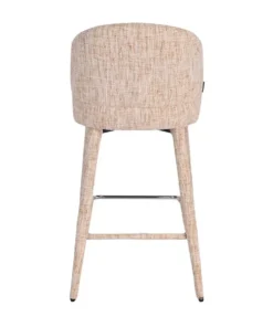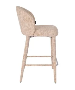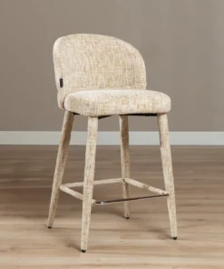 Deze moderne barkruk onderscheidt zich door zijn unieke design: volledig door gestoffeerd, van de comfortabele zitting tot de elegante poten. Het resultaat is daardoor een harmonieus en stijlvol geheel dat direct opvalt.