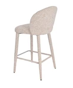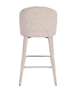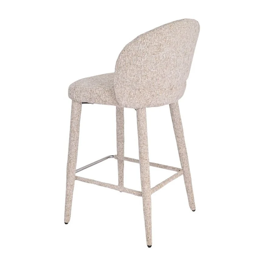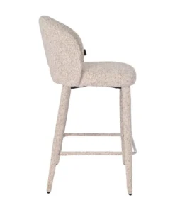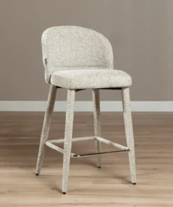 Deze moderne barkruk onderscheidt zich door zijn unieke design: volledig door gestoffeerd, van de comfortabele zitting tot de elegante poten. Het resultaat is daardoor een harmonieus en stijlvol geheel dat direct opvalt.