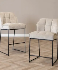 De bekleding van barkruk Jelle bestaat uit een polyester stof met een gemêleerde uitstraling. De stof is waterafstotend en heeft een Martindale score van 100.000. De stof is dus gemakkelijk schoon te houden en is daarnaast ook nog eens zeer slijtvast.