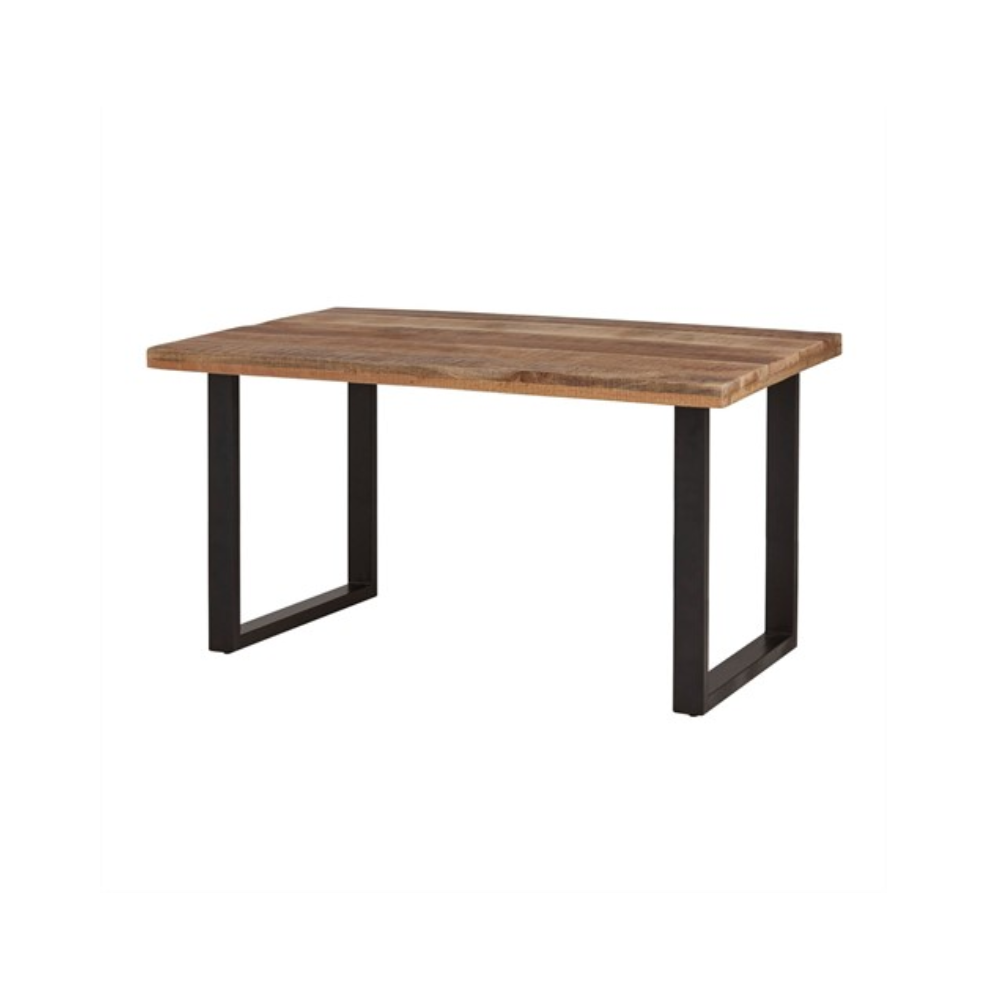 De bartafel recht 130 uit deze collectie zijn vervaardigd uit massief gelakt mangohout (55 mm optiek) met een rough finish en hebben een industrieel metalen onderstel met een zwarte poedercoating. De twee U-vormen, die in elkaar vallen, zorgen voor een stoer en eigentijds beeld.