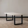 Het tafelblad heeft een rechthoekige afwerking en deze worden middels een kantenbandmethode afgewerkt. De dikte van het blad is 3,8 cm.