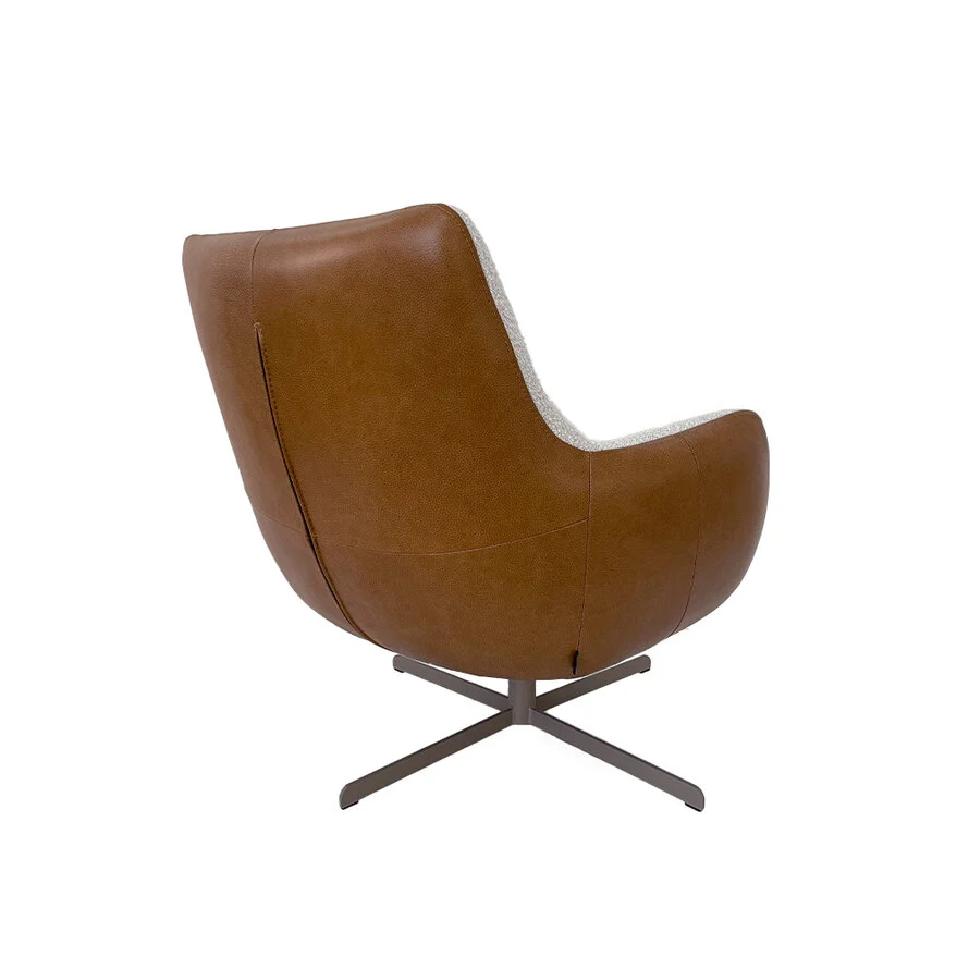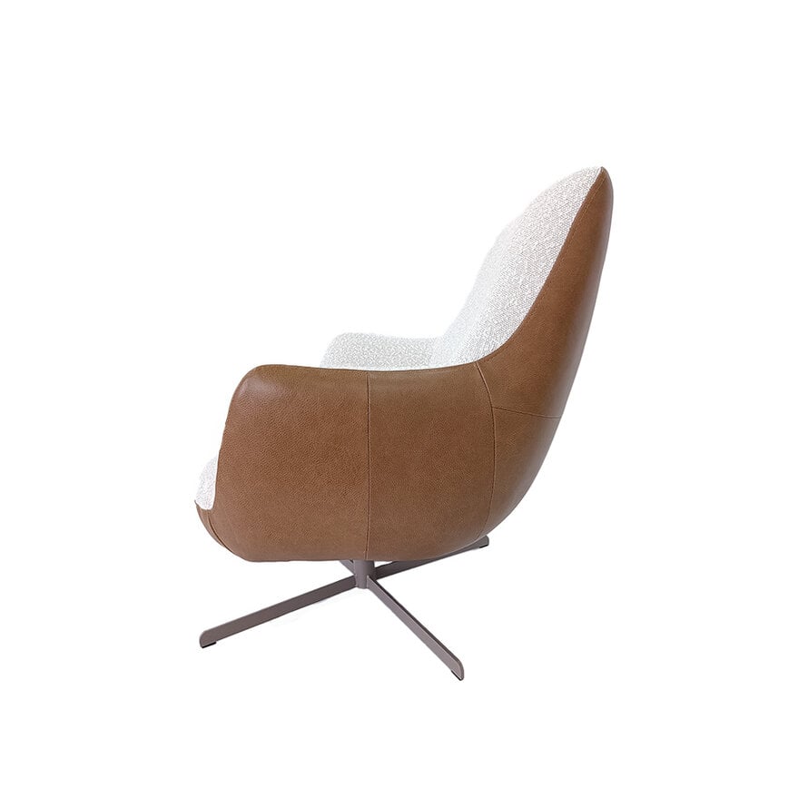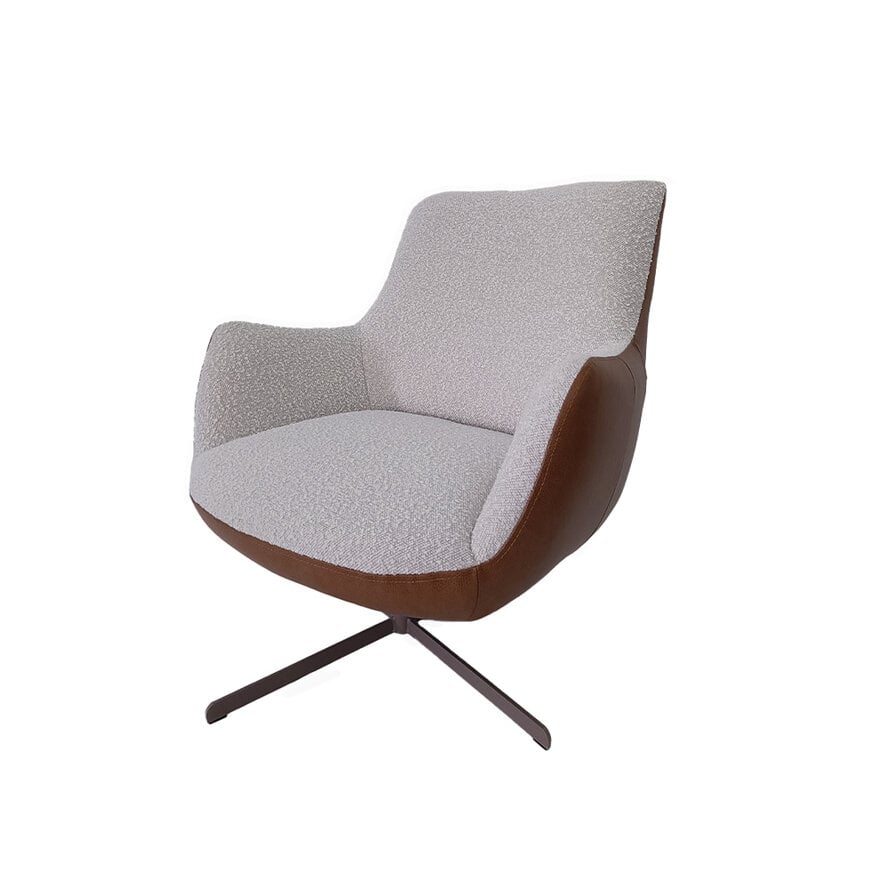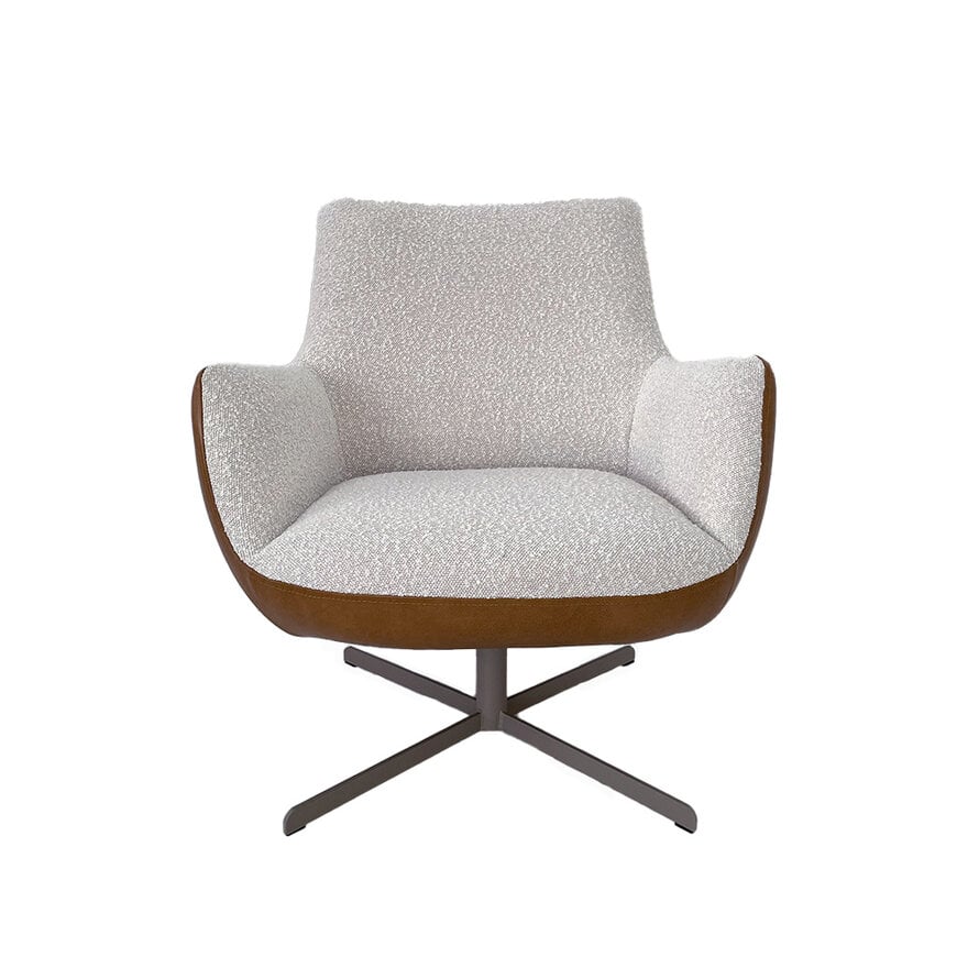 Draaifauteuil Stella bouclé/leer beige/cognac