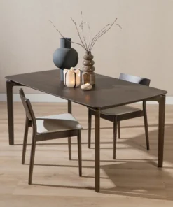Eettafel Cala walnoot met de afmetingen 240 x 100 cm is een unieke combinatie van minimalistisch design en strakke lijnen. Deze tafel voegt een vleugje elegantie toe zonder te veel op te vallen.