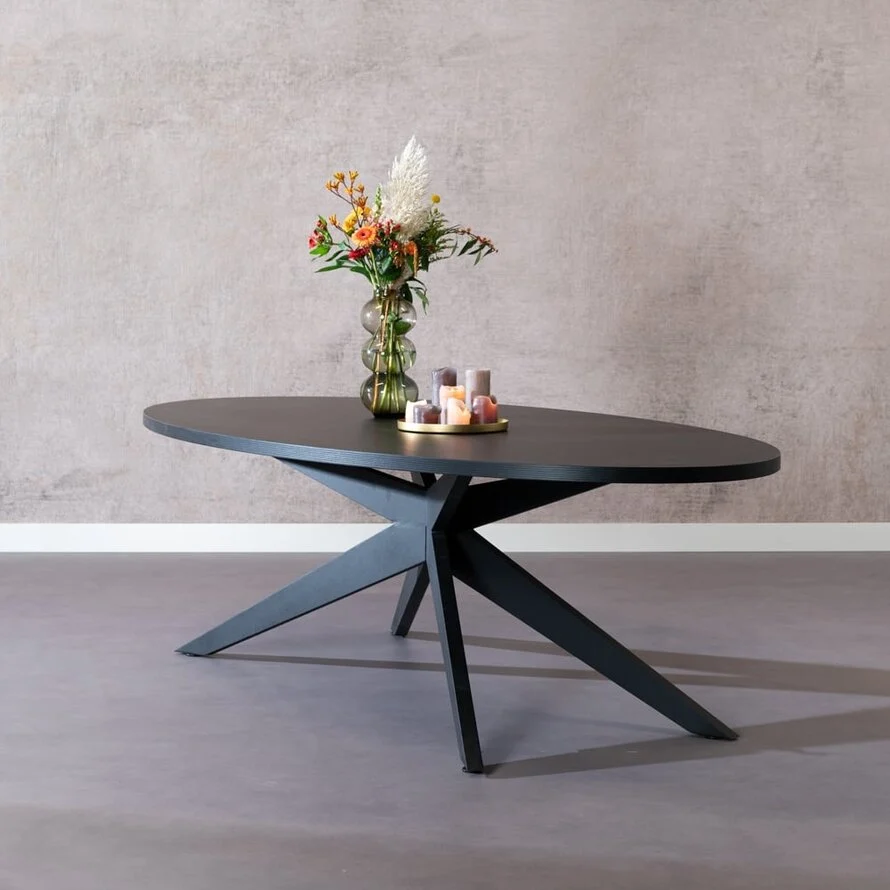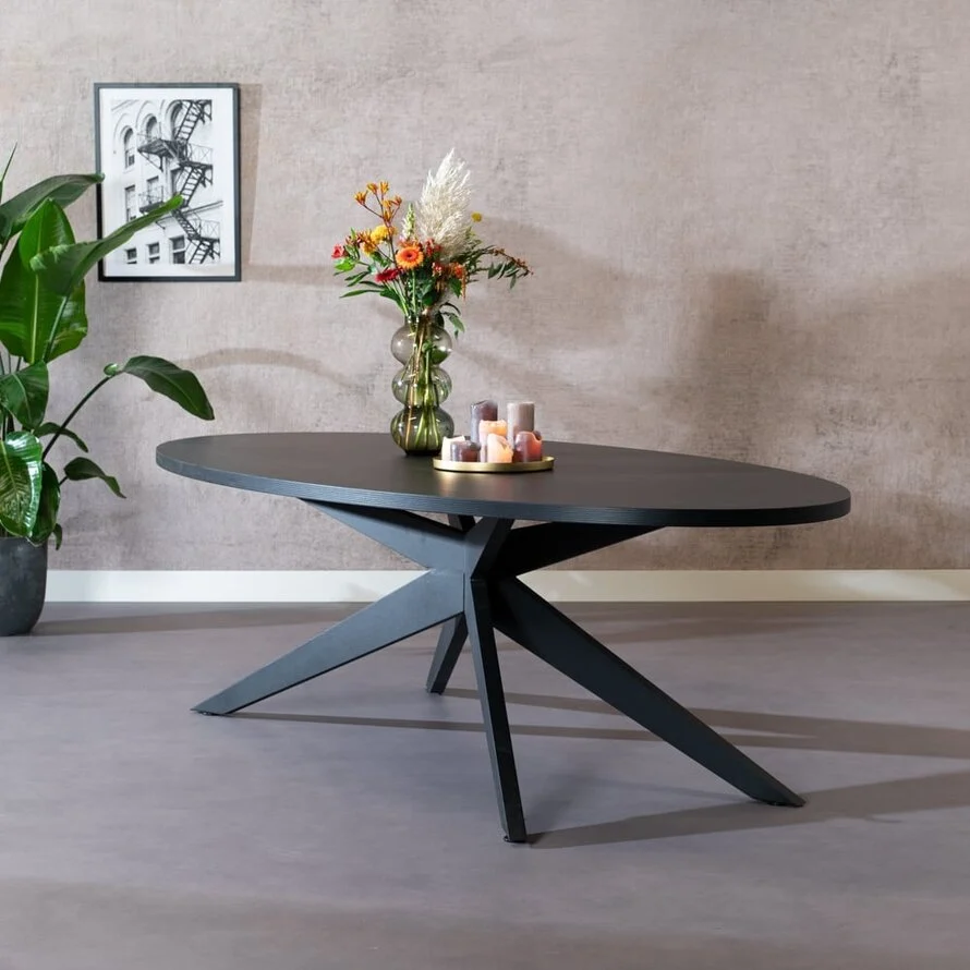 Eettafel Dio ovaal melamine zwart 270 x 130 cm