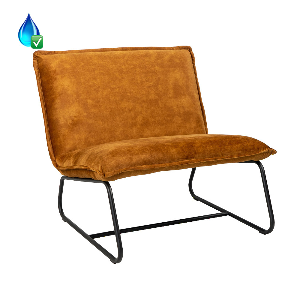 De Mika fauteuil heeft een zitting gemaakt van velvet. Velvet is één van dé interieurtrends van het moment en geeft een luxe uitstraling aan je interieur! Daarnaast is deze velvet stof waterbestendig en heeft een martindale score van 100.000, wat inhoudt dat deze fauteuil extreem slijtvast is. Het frame van de Mika fauteuil is gemaakt van metaal wat is voorzien van een laagje zwarte poedercoating. De Mika fauteuil velvet is verkrijgbaar in de kleuren groen, koper, grijs en okergeel.