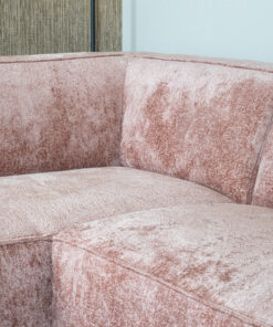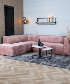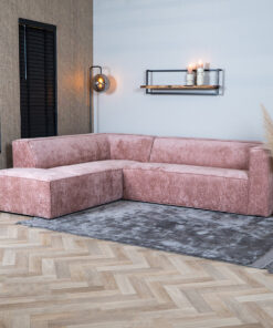 De bank Memphis is verkrijgbaar in een hoekbank links of rechts in de kleuren roze en wit.