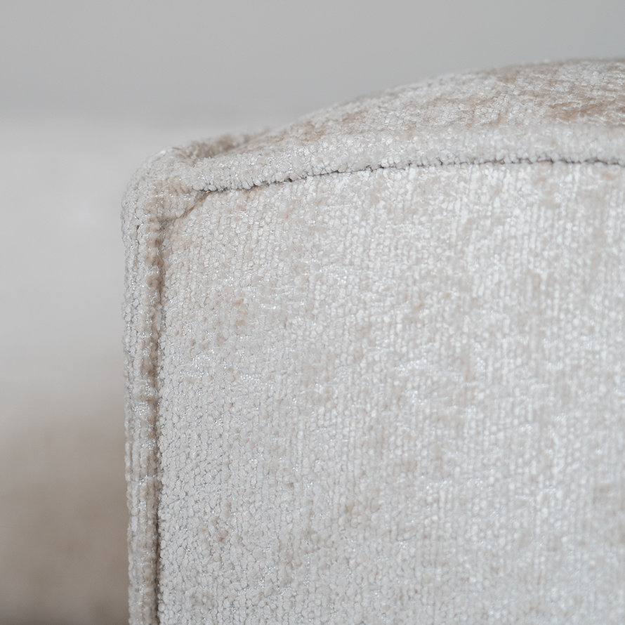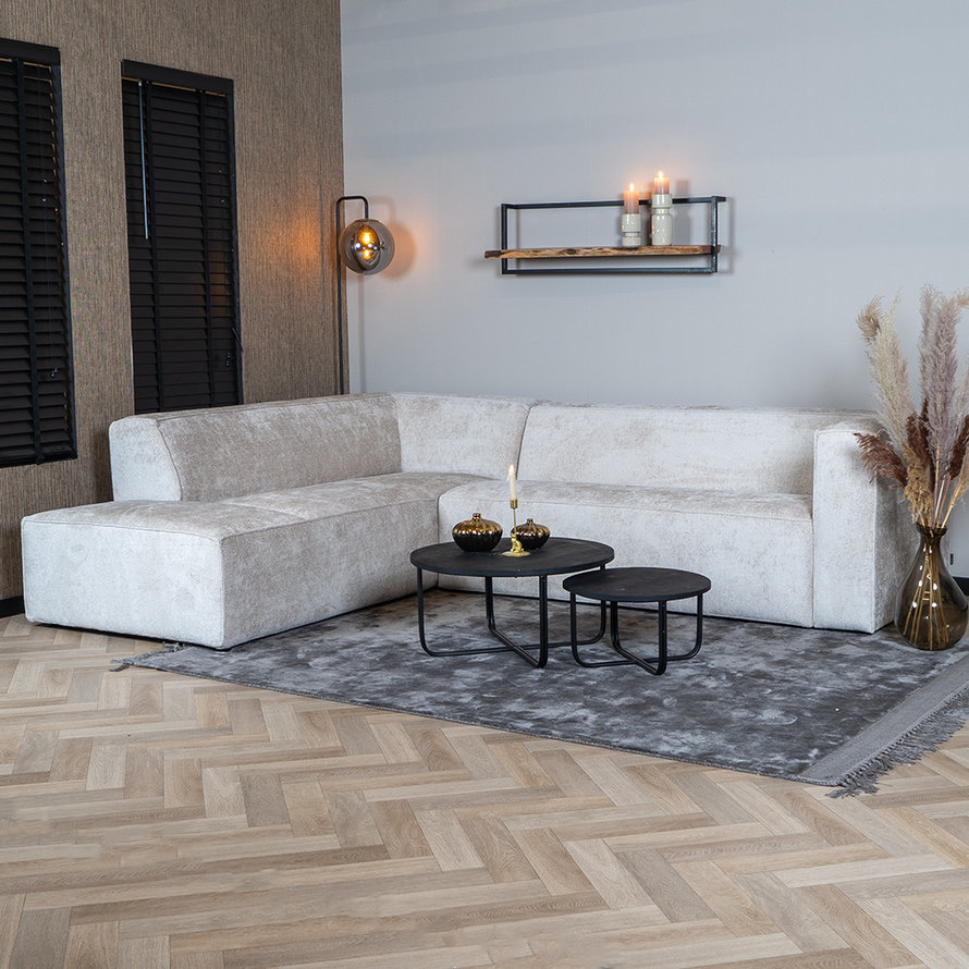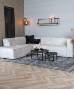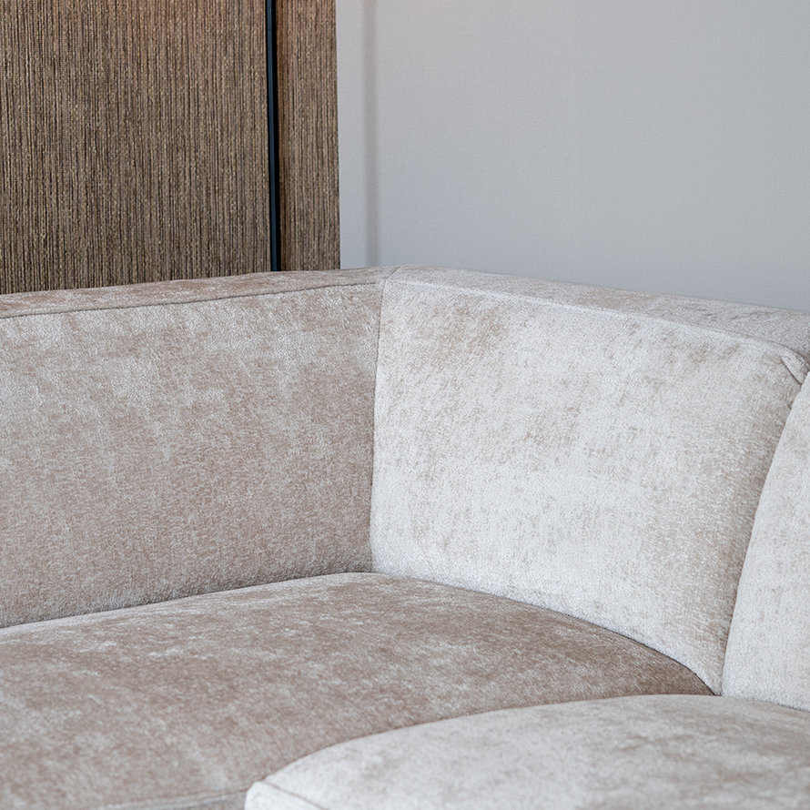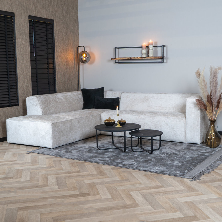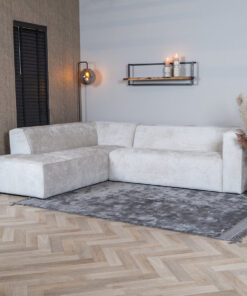 De hoekbank links Memphis is bekleed met een chenille stof. Chenille wordt gemaakt van chenille garen die bestaan uit polyester. Daarnaast heeft de stof een Martindale score van 100.000, dit geeft aan dat de bank slijtvast is. De bank is gemakkelijk te onderhouden door middel van een vochtige doek.