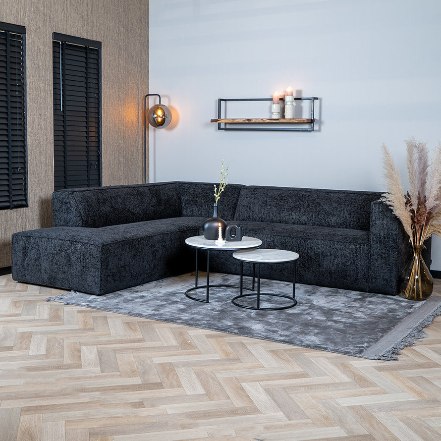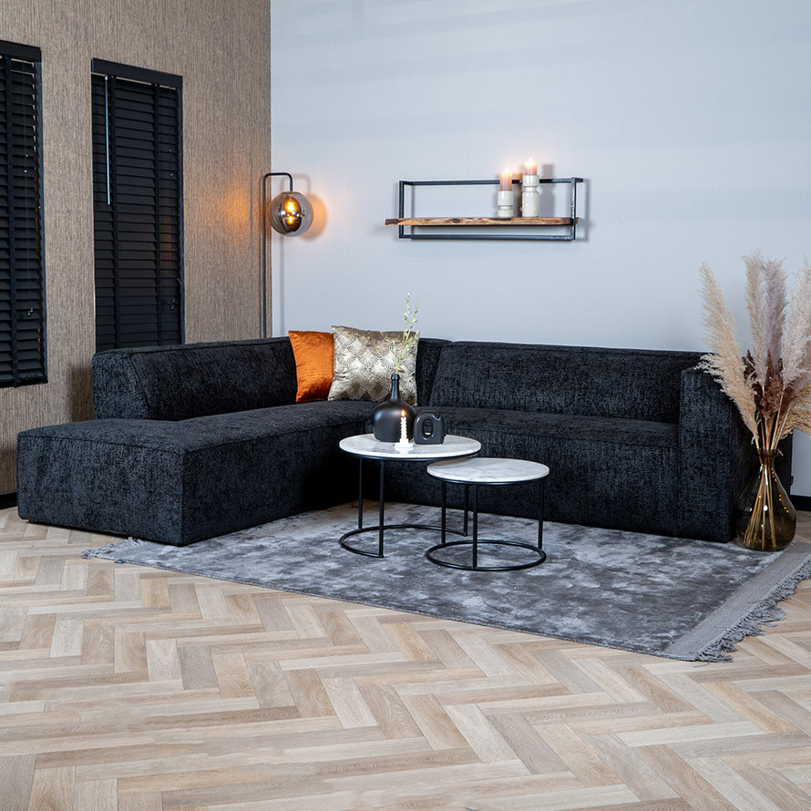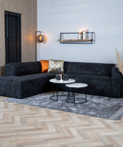 De hoekbank links Memphis is bekleed met een chenille stof. Chenille wordt gemaakt van chenille garen die bestaan uit polyester. Daarnaast heeft de stof een Martindale score van 100.000, dit geeft aan dat de bank slijtvast is. De bank is gemakkelijk te onderhouden door middel van een vochtige doek.