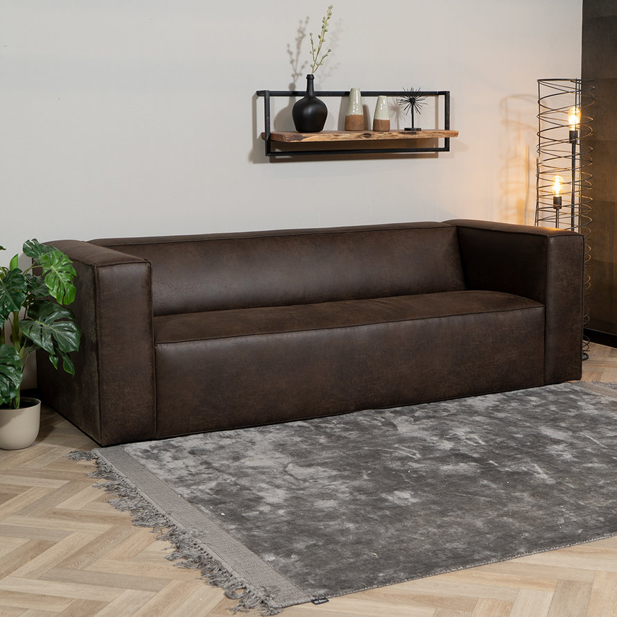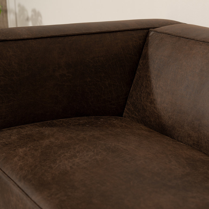 De 3-zitsbank Memphis is bekleed met een water- en vuilafstotende stof eco-leer. Eco-leer is een combinatie van leer en polyester. De bank heeft een Martindale score van 30.000, dit geeft aan dat het zeer slijtvast is. De bank is gemakkelijk te onderhouden door middel van een vochtige doek.