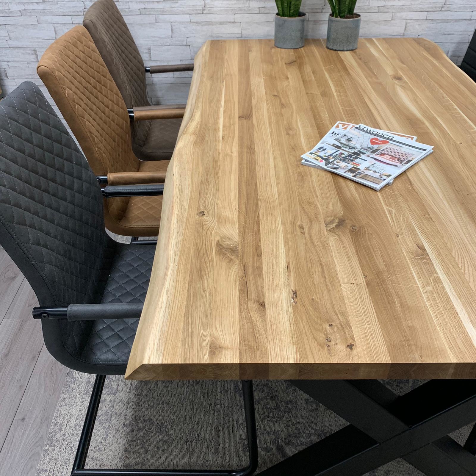 Massief eiken tafel Siem 140 x 80cm boomstam X-Poot
