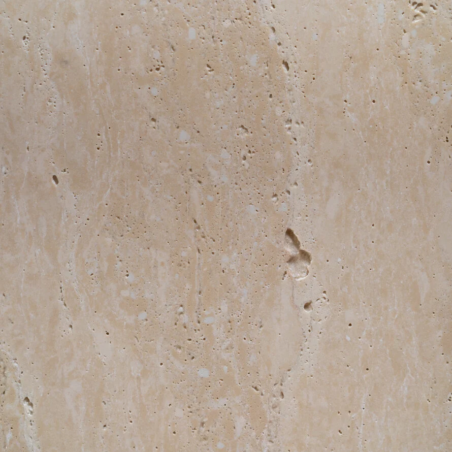 De salontafel bevat een laag eikenfineer. Eikenfineer straalt warmte uit en is duurzaam. Eikenfineer is gevoelig voor krassen en deuken dus het is belangrijk om de tafel goed te beschermen. Het is ook een goed idee om het meubel uit direct zonlicht te houden omdat dit de kleur van het fineer na verloop van tijd kan vervagen. Daarnaast is eikenfineer wel erg sterk, het buigt niet en trekt niet krom. Onder de laag eikenfineer is de salontafel gemaakt van MDF. Ook heeft de tafel een deel ingelegd travertin.
