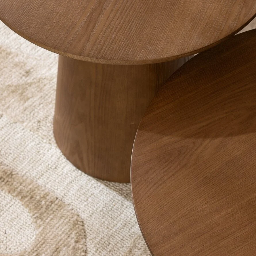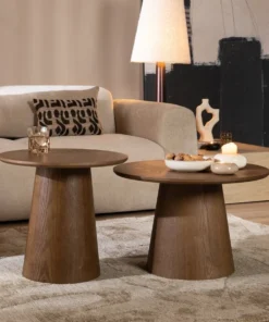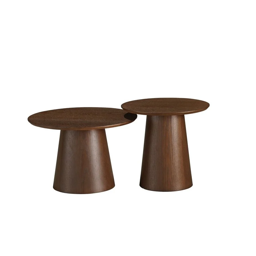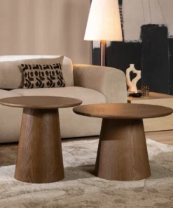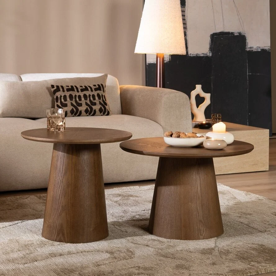 Salontafel set Ash bestaat uit twee salontafels, elk met een unieke afmeting, waardoor ze perfect bij elkaar passen en tegelijkertijd voor een speelse uitstraling zorgen.