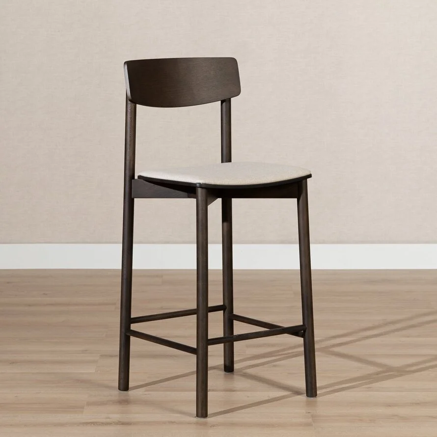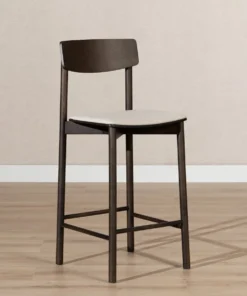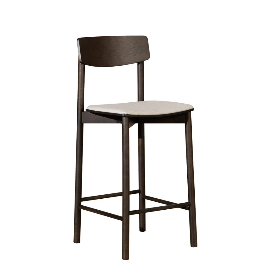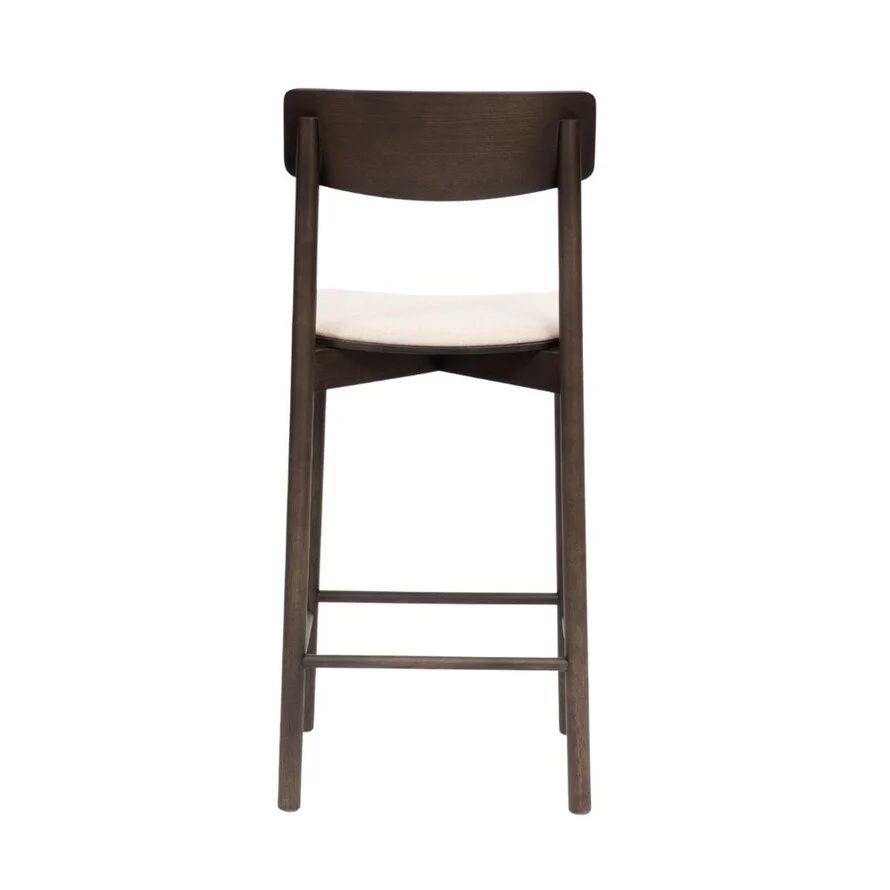Barkruk Inez in walnoot kleur brengt eenvoud en warmte samen. Inez heeft een minimalistisch design met een gestoffeerd zitkussen en de strakke lijnen maken de kruk eenvoudig en toch uitnodigend.