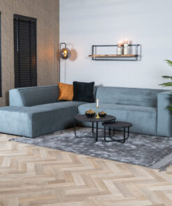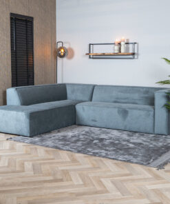De bank Memphis is verkrijgbaar in een hoekbank links of rechts in de kleuren taupe, antraciet, zwart en wit.