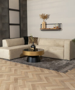 De bank Memphis is verkrijgbaar in een hoekbank in de kleuren taupe, antraciet, zwart en wit.