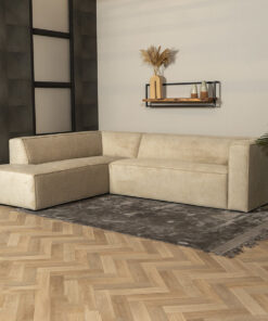 De hoekbank Memphis is bekleed met een waterbestendige polyester stof, in de kleur taupe. Daarnaast heeft de stof een Martindale score van 100.000, dit geeft aan dat de bank slijtvast is. De bank is gemakkelijk te onderhouden door middel van een vochtige doek.