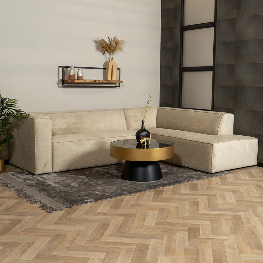 De hoekbank Memphis is verkrijgbaar in een hoekbank links of rechts in de kleuren taupe, antraciet, zwart en wit.