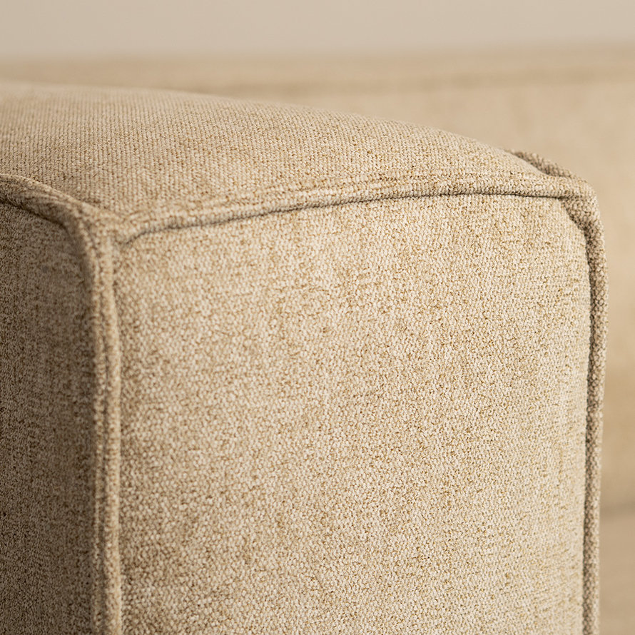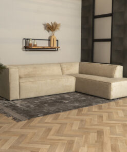 De hoekbank rechts Memphis is bekleed met een waterbestendige polyester stof, in de kleur taupe. Daarnaast heeft de stof een Martindale score van 100.000, dit geeft aan dat de bank slijtvast is. De bank is gemakkelijk te onderhouden door middel van een vochtige doek.