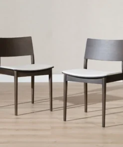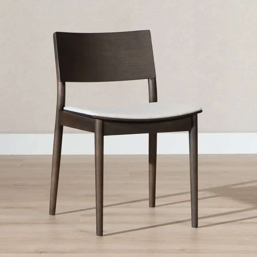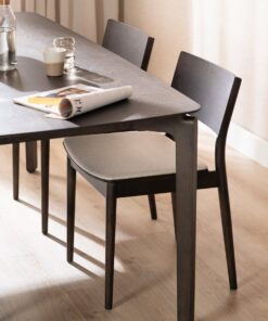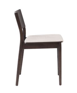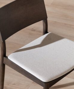 Stoel Elio in walnoot kleur brengt eenvoud en warmte samen. Elio heeft een minimalistisch design en de strakke lijnen maken de stoel eenvoudig en toch uitnodigend. De zitting heeft een gestoffeerd kussen van linnen stof met een off white kleur wat gemakkelijk te combineren is met omgevingskleuren.