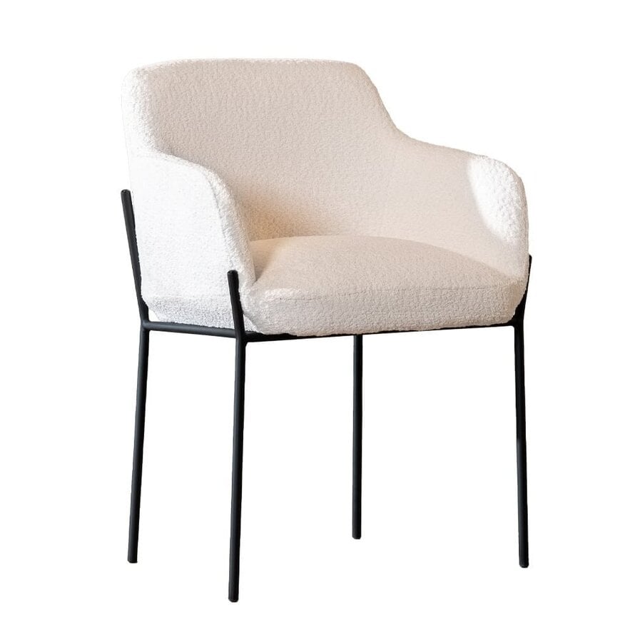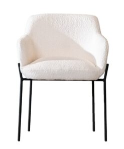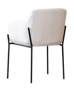 De Mary eetkamerstoel van bouclé stof heeft een hoog zitcomfort, hierdoor is deze perfect om te gebruiken voor bijvoorbeeld kantoorinrichting. Combineer de Mary eetkamerstoel met een grote vergader tafel en breng vele uren door samen met uw collega’s , genietend op deze comfortabel zittende stoel.