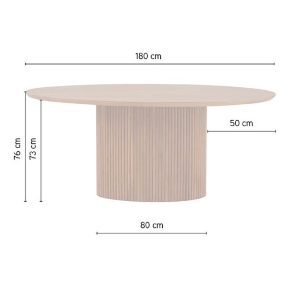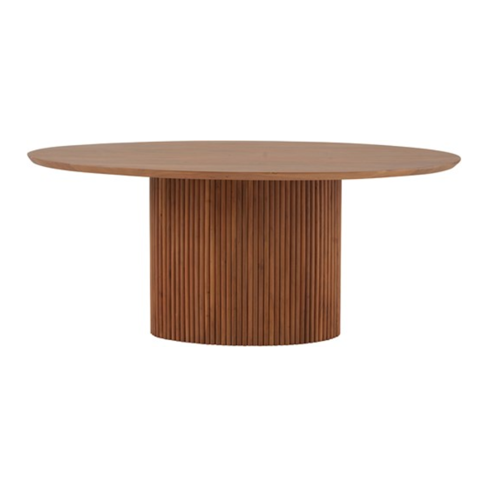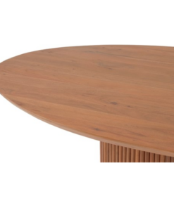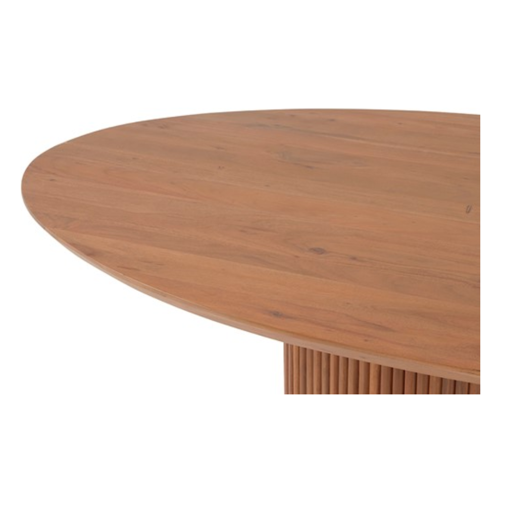 Maak kennis met de Eettafel Nairobi in Naturel Acaciahout. Deze ovale tafel is een zeer mooie en unieke tafel gemaakt van Acaciahout. De onderkant is gemaakt van houten latten wat het een erg unieke look geeft. Het blad is gemaakt van verschillende houten planken waardoor elke eetkamertafel uniek is.