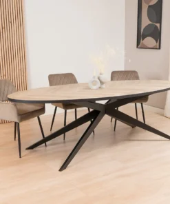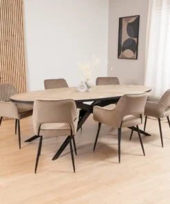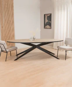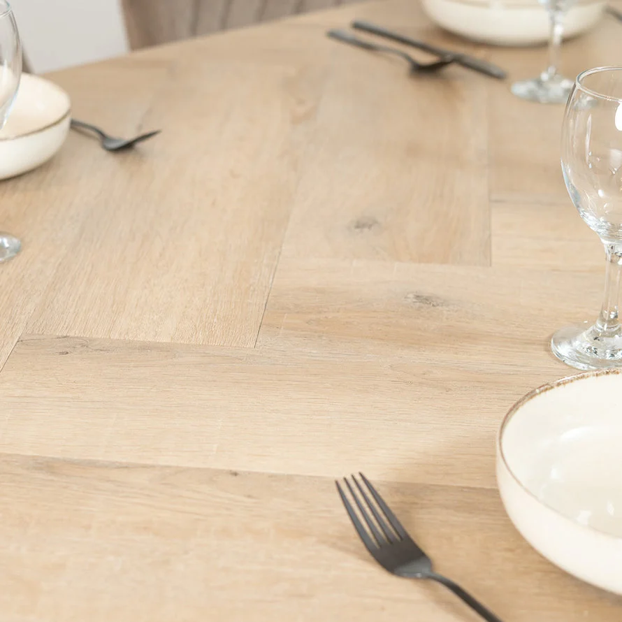 Een stijlvolle tafel met een luxe visgraatpatroon en een ovale vorm. Dat is eettafel Ilva. Met een licht eikenkleurige uitstraling zorgt deze voor een frisse en natuurlijke uitstraling. Hierdoor is de eettafel Ilva ovaal goed te combineren in een Scandinavisch interieur. Het tafelblad is ingelegd met een visgraatpatroon. Het visgraatpatroon zorgt voor een luxe uitstraling. Door de afgeronde vormen staat de tafel garant gezellig in de ruimte.
