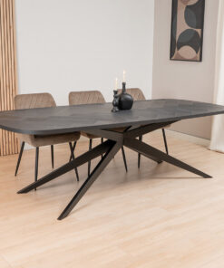 Visgraat eettafel zwart Deens ovaal Ingo PVC zwart 280 x 110 cm